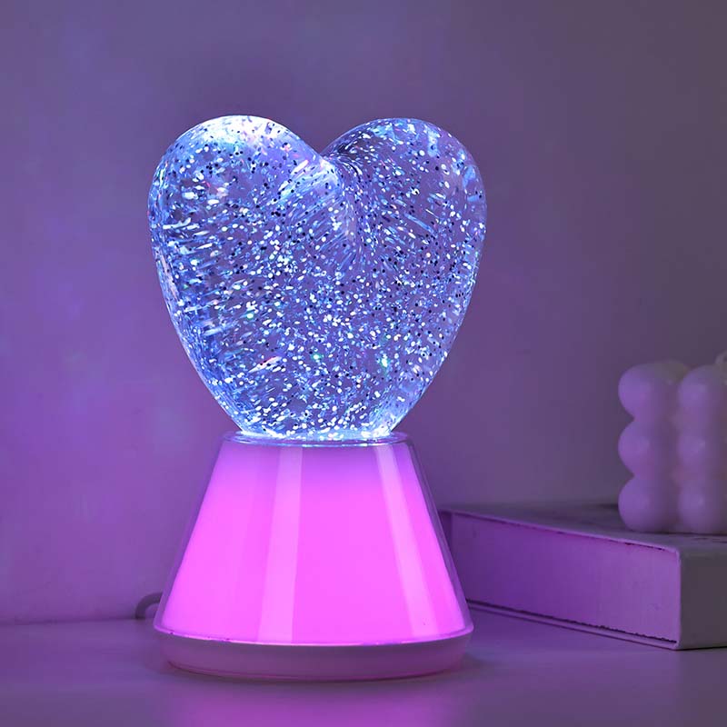 Heart Shade ဖြင့် အရောင်ပြောင်းနေသော အရည် Glitter ညအလင်းရောင်။ လျှို့ဝှက်ဆန်းကြယ်သော အရည်များဖြင့် ပြည့်နှက်နေသော ခမ်းနားထည်ဝါသော ဖန်ဘောလုံးတစ်လုံး ပါ၀င်ပြီး တောက်ပနေသော ဘော်ကြယ်များ ပေါ်နေပါသည်။ အံ့သြစရာကောင်းလောက်အောင်၊ မှော်ကမ္ဘာတွင် ကခုန်နေသကဲ့သို့ နှလုံးအရိပ်ဖြင့် ညအလင်းရောင်ဖြင့် အရောင်ပြောင်းနေသည့် အရည်တောက်တောက်တောက်များ။