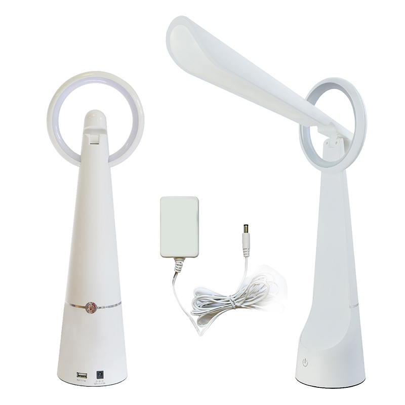 စားပွဲနောက်မီးခွက်တွင် usb အားသွင်းပေါက်ရှိသည်။