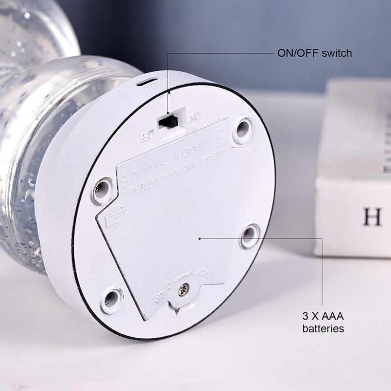 ဤညအလင်းရောင်၏ ဆွဲဆောင်မှုအရှိဆုံး အသွင်အပြင်တစ်ခုမှာ ၎င်း၏အရောင်များကို ပြောင်းလဲနိုင်စွမ်းရှိသည်။ Built-in LED များသည် အပြာ၊ အစိမ်း၊ ပန်းရောင်၊ နှင့် ခရမ်းရောင် အရိပ်များ အပါအဝင် တက်ကြွသော အဝါရောင် ရောင်စဉ်များဖြင့် လည်ပတ်ကာ ငြိမ်သက်ပြီး အမြင်အာရုံ ဆွဲဆောင်မှုရှိသော ပတ်ဝန်းကျင်ကို ပေးဆောင်သည်။ အတွင်းပိုင်းအရည်နှင့် တောက်ပသောအမှုန်များသည် ရေခူ၏ခန္ဓာကိုယ်အတွင်း လွတ်လပ်စွာ ရွေ့လျားကာ လှုပ်ရှားမှုနှင့် အသက်ကို အာရုံခံစားမှုဖြစ်စေသည်။ ၎င်းသည် အိပ်ခန်းများ၊ ဧည့်ခန်းများ သို့မဟုတ် တရားထိုင်သည့်နေရာများအတွက် အကောင်းဆုံးရွေးချယ်မှုဖြစ်စေသည့် စိတ်ဖိစီးမှုကို လျှော့ချနိုင်ပြီး အပန်းဖြေမှုကို မြှင့်တင်ပေးနိုင်သည့် ညှို့ဓာတ်အကျိုးသက်ရောက်မှုကို ဖန်တီးပေးသည်။