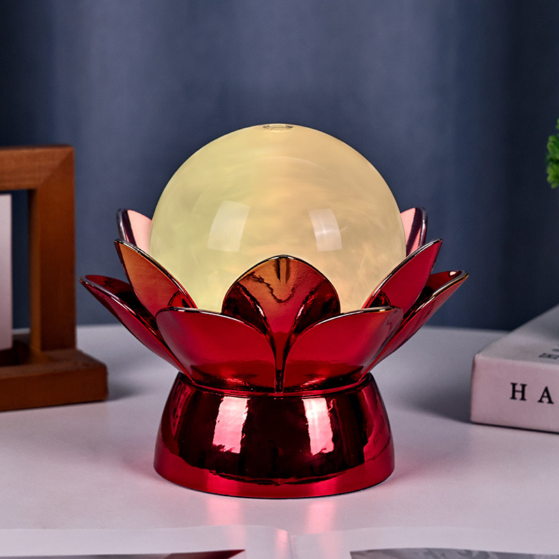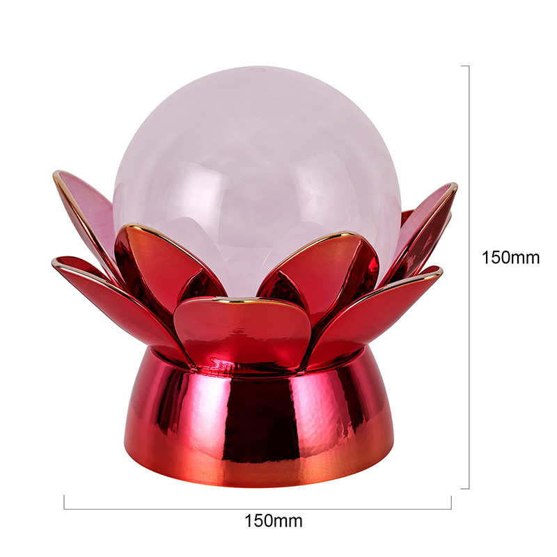 အရည်အသွေးမြင့်ပစ္စည်းများဖြင့် ဖန်တီးထားပြီး အောက်ခံကို ပွတ်တိုက်ထားသော သတ္တုဖြင့်ပြုလုပ်ထားပြီး အလင်းကို လှပစွာထင်ဟပ်စေကာ ၎င်း၏အသွင်အပြင်တွင် နက်နဲမှုနှင့် ကြွယ်ဝမှုတို့ကို တိုးမြင့်စေသည်။ ကြာပန်းဒီဇိုင်းသည် အလှအပဆိုင်ရာ အချက်အခြာအဖြစ်သာမက အရှေ့တိုင်းထုံးတမ်းစဉ်လာများတွင် အမြစ်တွယ်နေသည့် သင်္ကေတ အဓိပ္ပါယ်ဆောင်သည့် ဉာဏ်အလင်း၊ ခံနိုင်ရည်နှင့် သဟဇာတဖြစ်မှုကို ကိုယ်စားပြုသည်။ အလင်းပြန်မျက်နှာပြင်သည် အမြင်အာရုံကို ပိုမိုကောင်းမွန်စေပြီး အလင်းရောင်နည်းသောပတ်ဝန်းကျင်တွင်ပင် မီးအိမ်အား တောက်ပစေသည်။