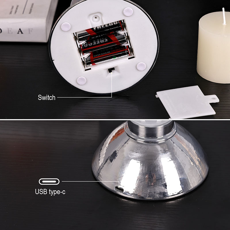 3AAA ဘက်ထရီဥရောပစတိုင်အလှဆင်ဖယောင်းတိုင်မီးကို သတ္တုနှင့် ပလတ်စတစ်ဖြင့်ပြုလုပ်ထားပြီး အပေါ်နှင့်အောက်ခြေကို သတ္တုဖြင့်ပြုလုပ်ထားသည်။ ထိပ်ပိုင်းသည် အလင်းရောင်အတွက် အသုံးများသော ဖယောင်းတိုင်များကို ကိုင်ဆောင်နိုင်ပြီး အလယ်အပိုင်းကို ဥရောပစတိုင် ဘူးသီးပုံစံဖြင့် ဒီဇိုင်းထုတ်ထားသည်။