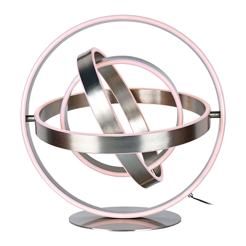 ဟိလက်ရာမြောက်သော LED စားပွဲတင်မီးအိမ်အဝိုင်းပုံ LED မီးလုံးများစွာဖြင့် ဖွဲ့စည်းထားပြီး LED မီးလုံးများသည် အဝိုင်းပုံအစွန်အဖျားတစ်ခုစီသို့ ဖြတ်တောက်ထားသည်။ အဝိုင်းပုံစံဒီဇိုင်းသည် စက်လုံးပုံသဏ္ဍာန်အဖြစ် လှည့်နိုင်သည်။