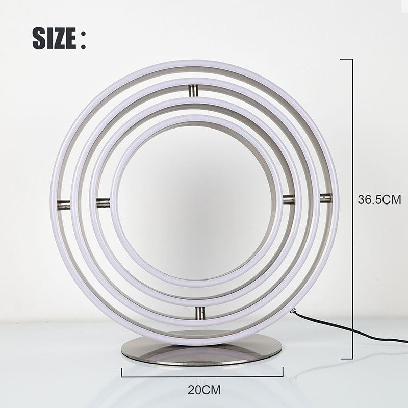 Multi-Ring LED Decorative Table Lamp ၊ ခေတ်မီဒီဇိုင်းနှင့် လုပ်ငန်းသုံးအလင်းရောင်များပေါင်းစပ်ထားသော ရင်သပ်ရှုမောဖွယ်ကောင်းသော ပေါင်းစပ်မှုဖြင့် သင့်နေထိုင်ရာနေရာကို ဆန်းပြားပြီး စတိုင်လ်ကျကျ ပြောင်းလဲသွားစေမည့် မိတ်ဆက်ပေးခြင်း။ ဤဆန်းသစ်တီထွင်ထားသော စားပွဲတင်မီးအိမ်သည် အရည်အသွေးမြင့် အလွိုင်းပစ္စည်းများကို စွဲမက်ဖွယ်လက်စွပ်မျိုးစုံဒီဇိုင်းဖြင့် ပေါင်းစပ်ထားသောကြောင့် မည်သည့်အိမ် သို့မဟုတ် ရုံးအတွက်မဆို ပြီးပြည့်စုံသော ပေါင်းစည်းမှုတစ်ခု ဖြစ်စေပါသည်။