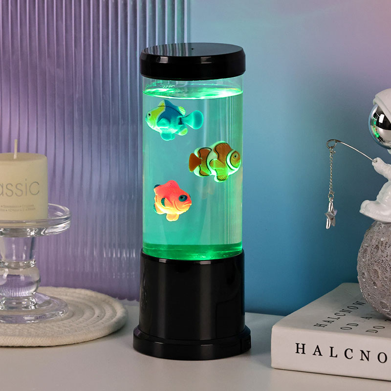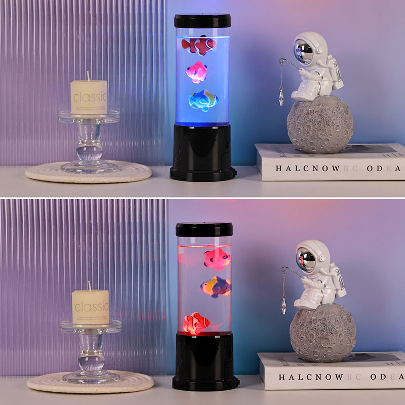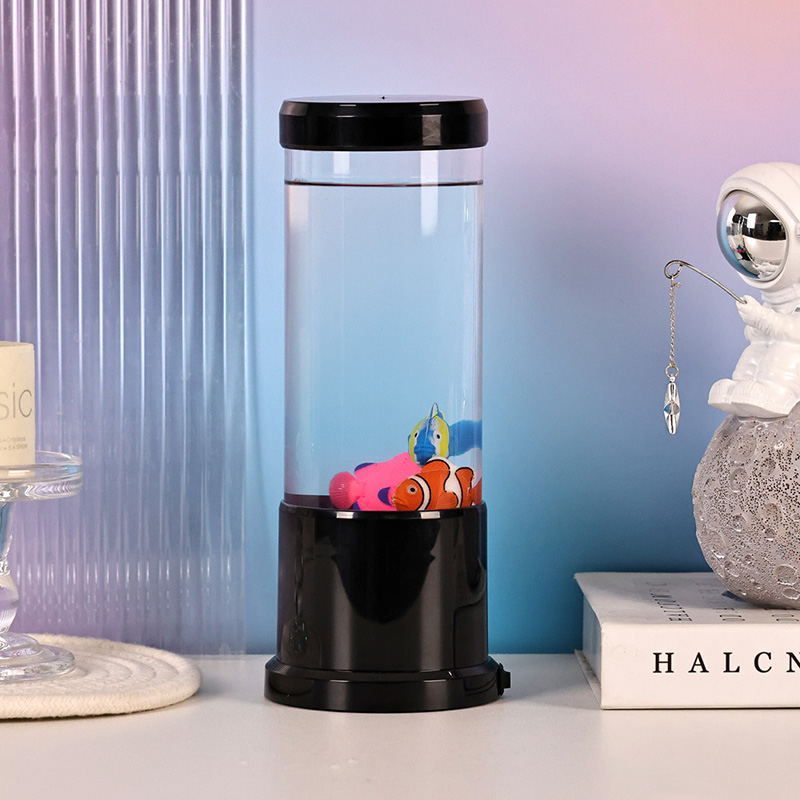 စွဲမက်ဖွယ်ကောင်းသော LED ငါးမီးအိမ် - ခေတ်မီဒီဇိုင်းနှင့် ရေနေသတ္တဝါတို့၏ ဆွဲဆောင်မှုရှိသော ရင်သပ်ရှုမောဖွယ်ပေါင်းစပ်ထားသော ရေအောက်ကမ္ဘာ၏ မှော်ဆန်မှုကို သင့်အိမ်အတွင်းသို့ သယ်ဆောင်လာစေသည်။ ၎င်း၏ ပြောင်လက်တောက်ပသော အနက်ရောင်အပြင်ပိုင်း၊ ကြော့ရှင်းသော ဆလင်ဒါပုံသဏ္ဍာန်နှင့် စွဲမက်ဖွယ်အတွင်းပိုင်းလှုပ်ရှားမှုများဖြင့်၊ ဤအလှဆင်မီးအိမ်သည် အလင်းရောင်မျှသာထက်—