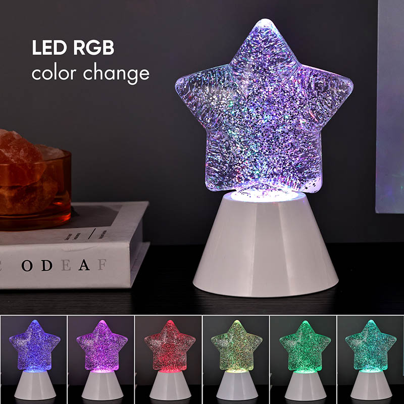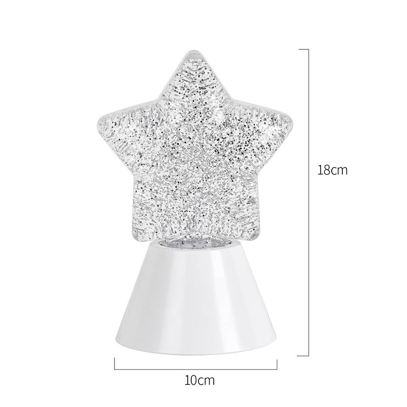 အဖြူရောင်အခြေစိုက်စခန်းနှင့်အတူ Kid တောက်ပအရည်ညဥ့်အလင်းရောင်သည်ကြည်လင်သောကြယ်ပွင့်ပုံသဏ် design ာန်ဒီဇိုင်းနှင့်အတူကောင်းကင်အလှအပ၏အနှစ်သာရကိုဖမ်းယူနိုင်သည့်တောက်ပသောကြယ်ပုံဒီဇိုင်းနှင့်ပါ 0 င်သည်။ အရည်အသွေးမြင့်မားသောပစ္စည်းများမှပြုလုပ်ထားသောဤဆီမီးခွက်သည်ပလတ်စတစ်ဖြင့်ပြုလုပ်ထားသောအခြေခံတစ်ခု, ကြယ်ပွင့်ကိုယ်တိုင်ကတောက်ပနေသောတောက်ပနေသောအမှုန်များနှင့်ပြည့်နေသောအမှုန်များနှင့်ပြည့်နေပြီးမီးခွက်မီးများထွန်းလင်းသကဲ့သို့အမြင်အာရုံအကျိုးသက်ရောက်မှုကိုဖြစ်ပေါ်စေသည်။ RGB Leed LED သည်တက်ကြွသောအရောင်များကိုဖြတ်သန်းသွားသည်နှင့်အမျှတောက်ပသောအရောင်များကိုဖြတ်သန်းသွားသောအရောင်များသည်သင့်အားစာလုံးပေါင်းထုတ်လွှတ်လိမ့်မည်