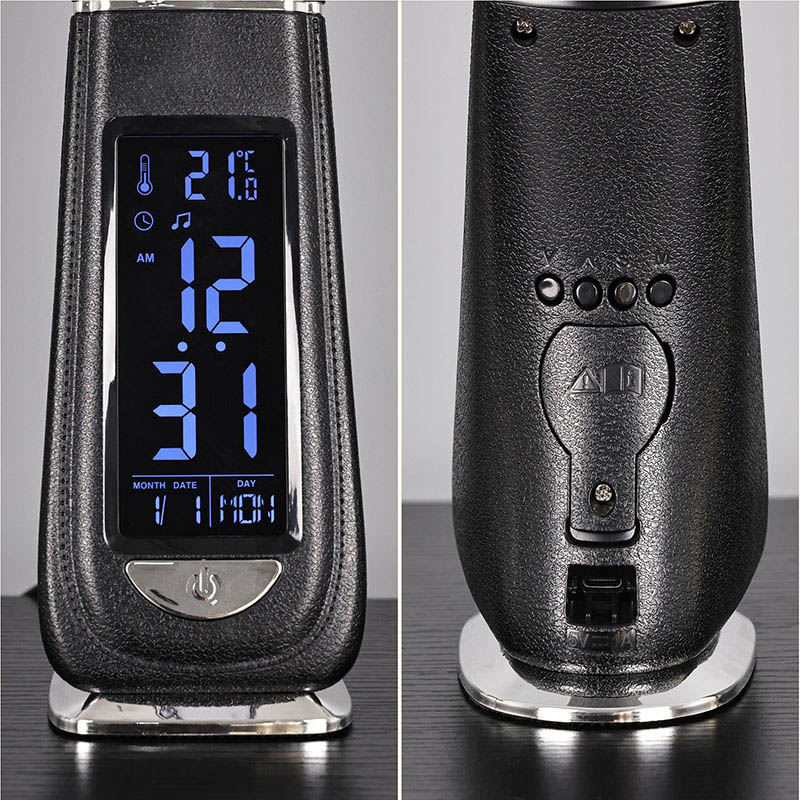 ဆန်းသစ်သောသားရေတိုင်မီးခွက် - ကြော့ရှင်းမှုသည် 3-level lighting, LED alalt clock clock display နှင့် USB အားသွင်းသည့်ဆိပ်ကမ်းနှင့်အတူလုပ်ဆောင်နိုင်စွမ်းနှင့်တွေ့ဆုံသည်