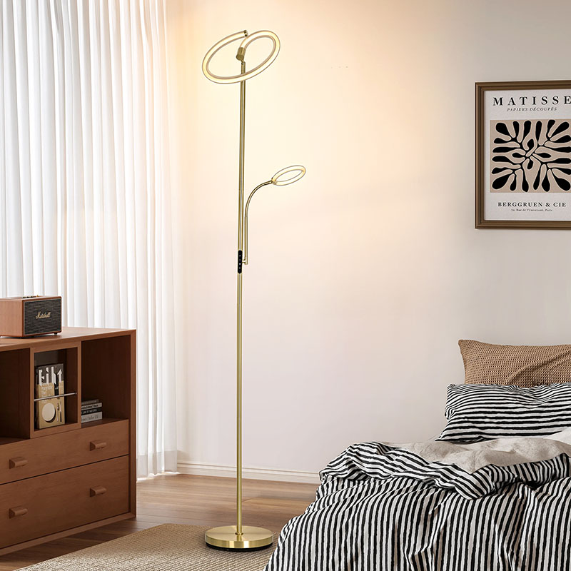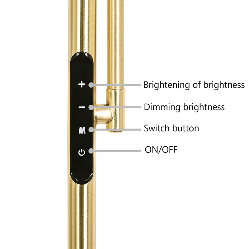 ဧည့်ခန်းအတွက် Luxury Gold led ကြမ်းခင်းမီးခွက်ကို အရည်အသွေးမြင့် ရွှေသတ္တုဖြင့် ပြုလုပ်ထားပြီး ရိုးရှင်းသော်လည်း ဇိမ်ခံသော အလုံးစုံဒီဇိုင်းဖြင့် ပြုလုပ်ထားသည်။ သတ္တုပစ္စည်းများကို ချောမွတ်ပြီး နူးညံ့သိမ်မွေ့သော မျက်နှာပြင်နှင့် နူးညံ့သော တောက်ပြောင်မှုတို့ဖြင့် သပ်ရပ်စွာ ပွတ်တိုက်ပြီး ကုသထားပြီး မွန်မြတ်ပြေပြစ်သော လေထုကို ပြသထားသည်။ ဧည့်ခန်း ၊ အိပ်ခန်း ဖြစ်ဖြစ် ၊