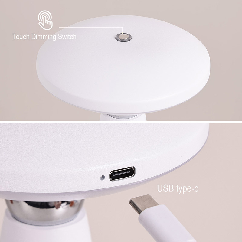 အားပြန်သွင်းနိုင်သော ဘက်ထရီပါသော Mushroom LED စားပွဲတင်မီးအိမ်တွင် နွေးထွေးသောအလင်းရောင်ကို ထုတ်လွှတ်ပြီး အလင်း၏ပြင်းထန်မှုကို ချိန်ညှိနိုင်သည့် အဆင့်မြင့် LED အလင်းရင်းမြစ် တပ်ဆင်ထားပါသည်။ အဆုံးမရှိ မှိန်မှိန်မှိန်မှိန်သည် သင့်မျက်လုံးများကို ထိထိရောက်ရောက် ကာကွယ်ပေးပါသည်။ ရိုးရှင်းသောစစ်ဆင်ရေးမှတဆင့်