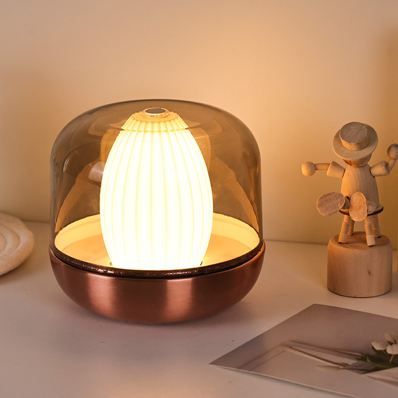 ဤနွေးထွေးသော ညအလင်းရောင်၏ ဒီဇိုင်းလှုံ့ဆော်မှုမှာ သဘာဝတရားနှင့် ဗိသုကာဆိုင်ရာ ပေါင်းစပ်မှုမှ ထွက်ပေါ်လာခြင်းဖြစ်သည်။ ၎င်း၏ လုံးဝန်းပြီး ဖောင်းကားသော လုံးလုံးပုံစံဖြင့်၊ ၎င်းသည် စေ့စေ့စပ်စပ် ထွင်းထုထားသော ပယင်းကျောက်မျက်ရတနာနှင့် ဆင်တူသည်။ စားပွဲ သို့မဟုတ် စားပွဲပေါ်တွင် ထားရှိခြင်းဖြင့် ၎င်းကို အာရုံစူးစိုက်မှု မစိုက်ထုတ်ဘဲ ဖြစ်လာသည်။ အပြင်ဘက်အလွှာတွင် အတွင်းပိုင်းအလင်းရင်းမြစ်ကို ကာကွယ်ပေးရုံသာမက အလင်းယိုင်မှုမှတဆင့် ထူးခြားသောအလင်းနှင့် အရိပ်အလွှာများကို ဖန်တီးပေးကာ အိပ်မက်ကဲ့သို့ အမြင်အာရုံအကျိုးသက်ရောက်မှုကို ထုတ်ပေးပါသည်။
