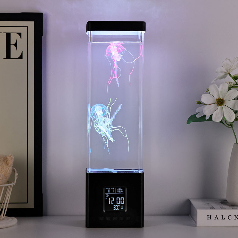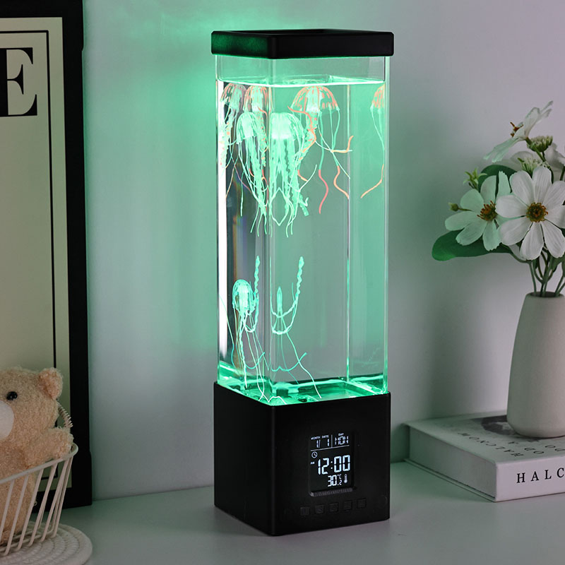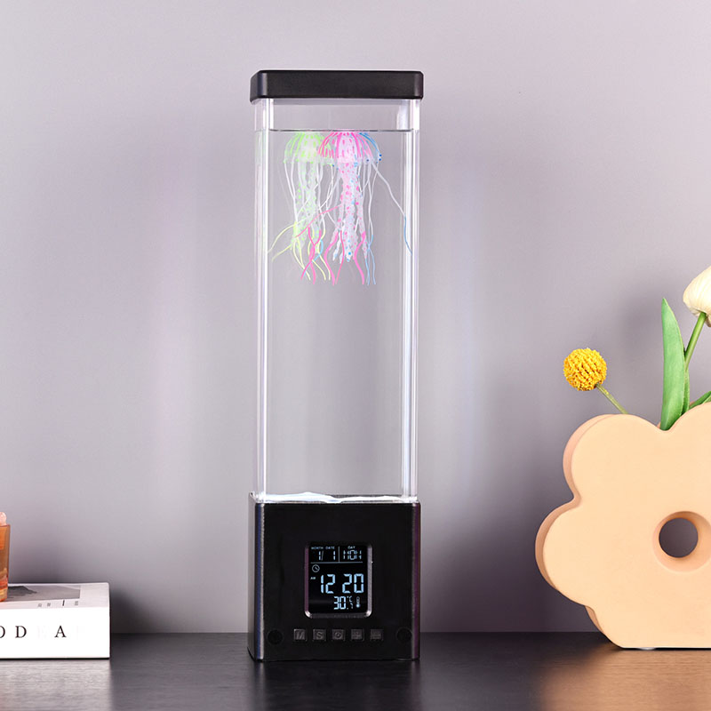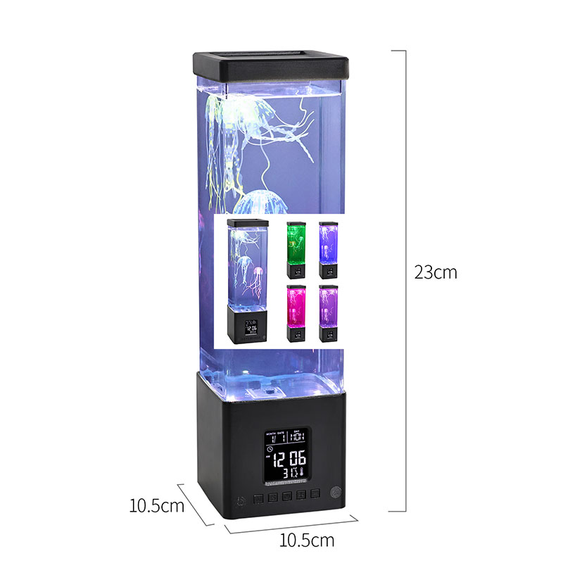 -Clock Jellyfish Bluetooth Speaker - အဖုံးဖွင့်ပြီးစားပွဲပေါ်တင်လိုက်သောအခါ Jellyfish သို့အလားတူပုံသဏ္ဌာန်နှင့်ဆင်တူသည်, ၎င်းသည်မြင့်မားသောပတ်ဝန်းကျင်အလင်းဖြစ်လာသည်။ Tementacles များသည်သဘာဝအားဖြင့်သဘာဝအားဖြင့် swing, display အချိန်နှင့်အရောင်ပြောင်းလဲနိုင်သည်။ ထို့အပြင်၎င်းတွင်ကောင်းမွန်သောအသံအရည်အသွေးနှင့်အတူ Bluetooth Speaker function လည်းရှိသည်
