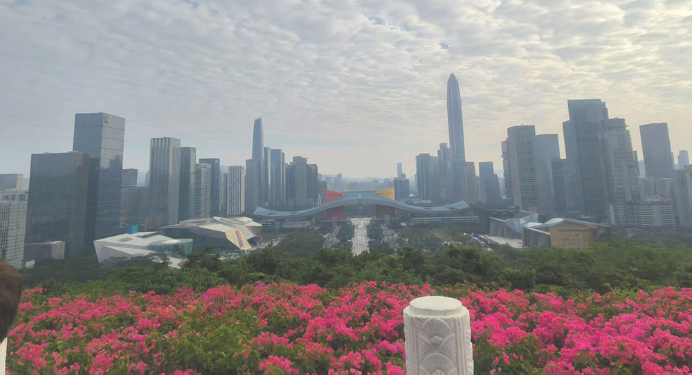 မိနစ် 20 တောင်တက်ပြီးနောက်၊ လူတိုင်းသည် တောင်ထိပ်သို့ရောက်သည်။ Comrade Deng Xiaoping ရဲ့ ကြေးရုပ်တုရှေ့မှာ ရပ်ပြီး စည်ကားနေတဲ့ Shenzhen မြို့ကို အပေါ်စီးကနေ ကြည့်ရင်း ရင်ထဲမှာ ခံစားချက်တွေ ပြည့်နှက်နေတယ်။