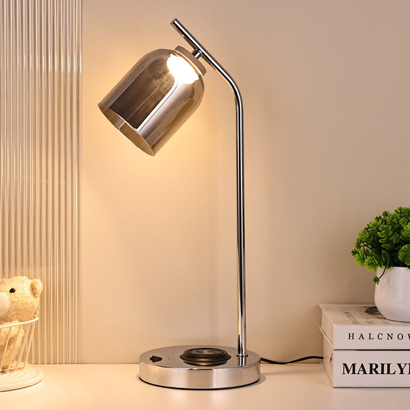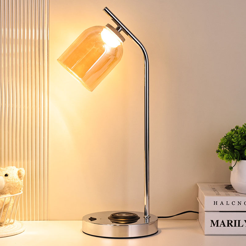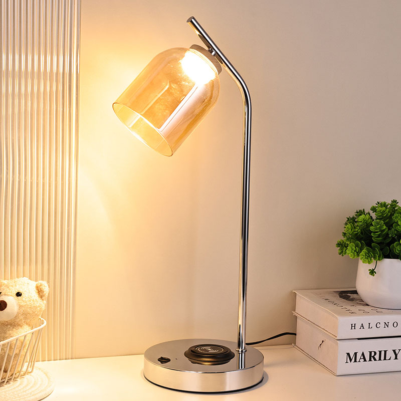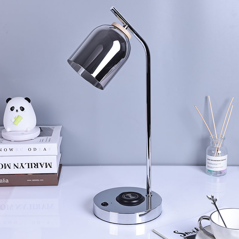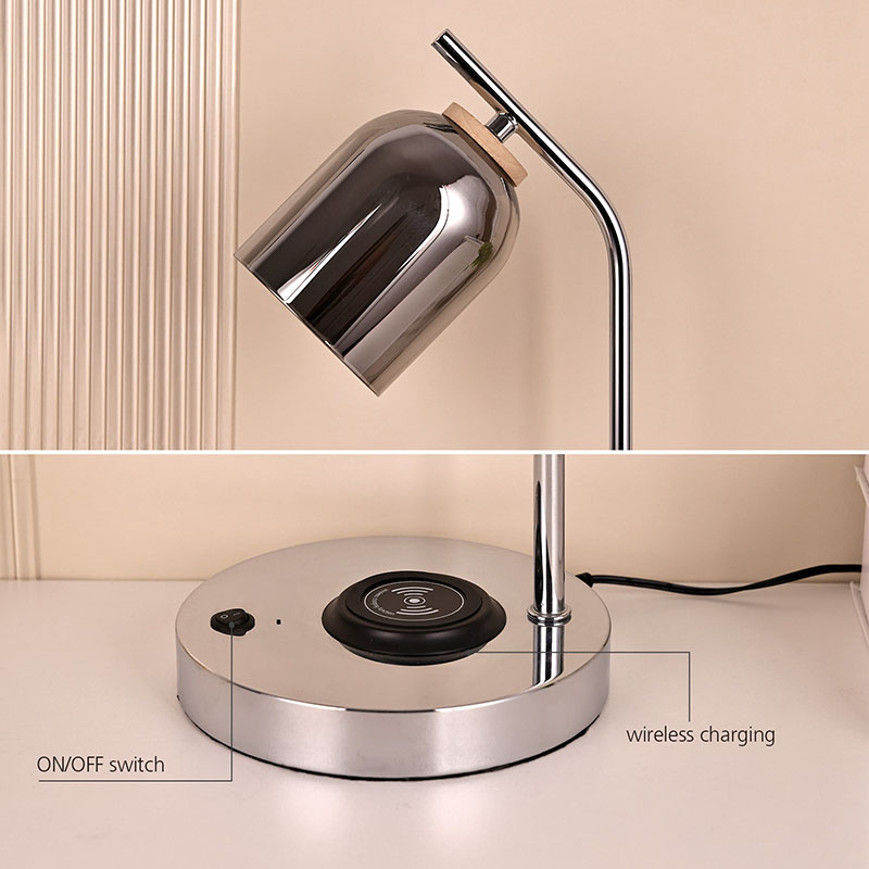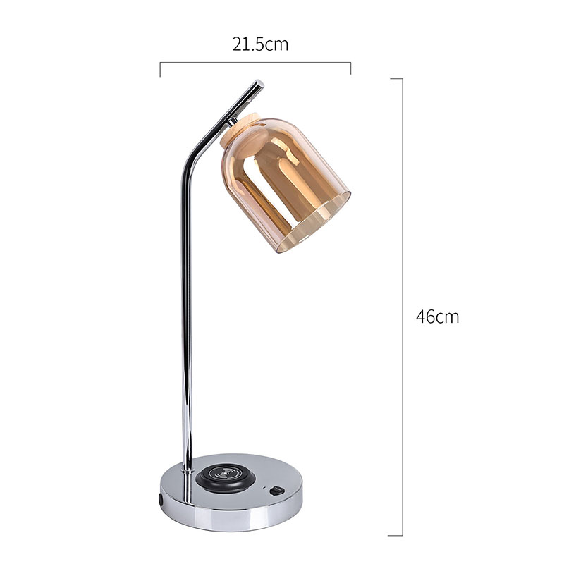 ဖန်အရိပ်ပါသော QI ဦးဆောင်စားပွဲတင်မီးအိမ် QI ကြိုးမဲ့လက်မှတ်ရှိသည်။ 5V1A ကြိုးမဲ့ဖုန်းအားသွင်းကိရိယာကို အောက်ခြေတွင်တပ်ဆင်ပါ။
