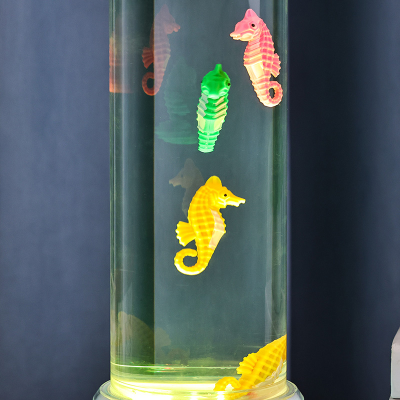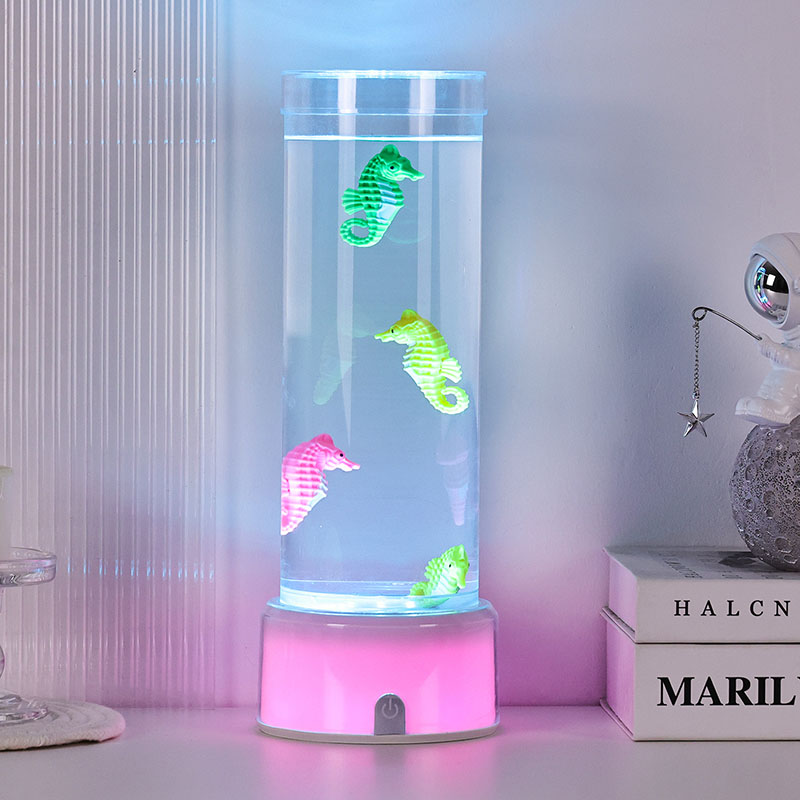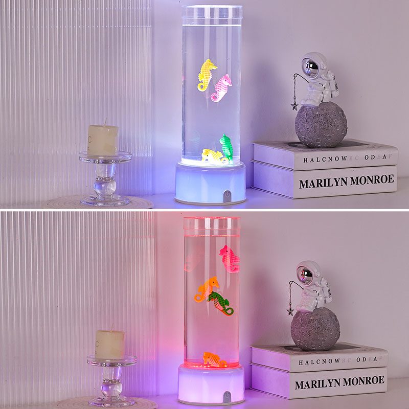 RGB Colour Changing Seahorse Decorative Lamp ကို မိတ်ဆက်ခြင်း ဆွဲဆောင်မှုရှိသော ပင်လယ်ရေနေကျက်သရေနှင့် ခေတ်မီအလင်းရောင်နည်းပညာတို့ ရောစပ်ထားသည့် အာကာသအတွင်း အေးချမ်းမှုနှင့် အလှတရားများကို ဆောင်ကြဉ်းပေးနိုင်ရန် ဒီဇိုင်းထုတ်ထားသည့် ဤကြော့ရှင်းသော မီးလုံးသည် ကြည်လင်ပြတ်သားသော ဆလင်ဒါပုံသဏ္ဍာန်ရှိသော အရည်ခန်းအတွင်း၌ သက်ရှိထင်ရှားရှိသော ပင်လယ်မြင်းရုပ်ပုံများပါ၀င်သည် ။