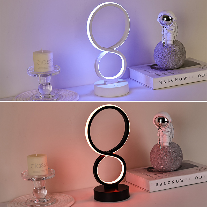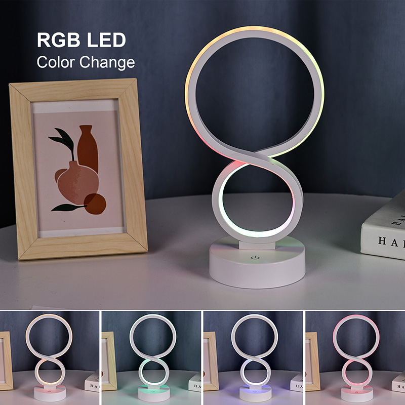 8 အရိပ်နှင့်အတူ RGB အလင်း LED စားပွဲတင်မီးအိမ်