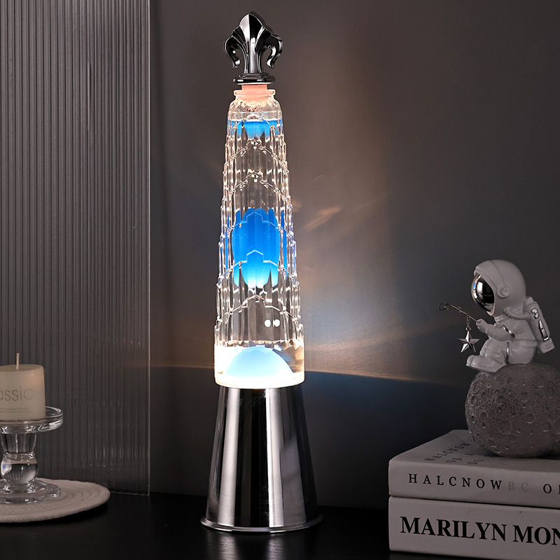 Tower Shade lava မီးအိမ် စားပွဲတင်မီးအိမ်သည် အလင်းရောင်ကို ပျော့ပျောင်းစေရုံသာမက သင့်အတွက် အိပ်မက်ဆန်သော လေထုကိုလည်း ဖန်တီးပေးပါသည်။ ဒီမီးခွက်ကို ငေးကြည့်တိုင်း အပြာရောင်ဖယောင်းက ကြည်လင်တဲ့ရေထဲမှာ စီးဆင်းနေတယ်။